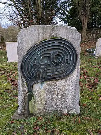 ![]() Headstone of Michael Ayrton, featuring the design of the Arkville Maze. | |