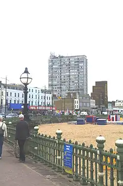 Despite the controversy of a high-rise apartment building close to Margate's seafront, it is now considered a popular place to live because of spacious flats and good views. As of 2022, properties for flats have reached prices around £150,000.[17] However, the retail premises and car park surrounding the block continue to be close to derelict.[18]