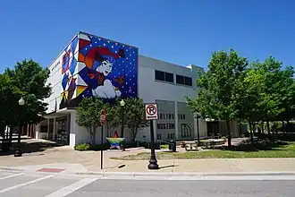 The Arlington Museum of Art traces its history to the foundation of the Arlington Art Association by Howard and Arista Joyner in 1952. Howard Joyner established the Art Department at the University of Texas at Arlington, and Arista Joyner was the first art teacher at Arlington High School. The Arlington Art Association promoted art in the city by sponsoring juried art exhibitions, shows featuring local artists, and art auctions benefiting scholarships for local high school students, while also creating a savings fund to eventually purchase a building to serve as its permanent home.[1] In 1986, the Arlington Art Association bought the former J. C. Penney store on Main Street in downtown Arlington, which it remodeled extensively and moved into in 1989 after incorporating as the Arlington Museum of Art.[1][5] The first exhibition at the museum opened in May 1990 and featured contemporary art.[1]