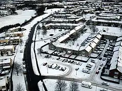 In 1919, at the centre of the town (the Cross), a cast-iron memorial was erected. Erected by the public, the Kerr Memorial commemorates a Mrs Elizbeth Kerr who was fatally injured in the saving of a child from being run over by a passing motor car.[17] In 1923, a large Miner's Welfare Institute was established in the town (it has since been converted to flats).[17] Most of the mines and other industry in the town closed following the Second World War. As with most mineral dependent communities, as the deposits were exhausted and the pits closed, many moved away but enough local industry remained for the township to survive and today it has also become a commuting hub for those employed in the major towns, although the brickworks have now closed. Many areas of the town remain derelict (in 2024 it was reported that 77% of the population in the town live within 500m of a derelict site, compared with 16% on average in West Lothian).[24] In 1966, a new harled council office building was built in the town (it is now a Vets).[17] In 2018, following a community fundraising effort, the town erected a new war memorial to those lost in wars from Armadale and the surrounding area.[25] The memorial was erected at Watson park in the town and includes a statue of a bagpiper.[25]