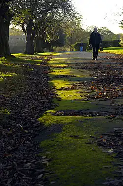 Armley Park has many amenities, including football pitches, tennis courts, bowling greens, a children's playground and gardens.[4] There are also several Grade II listed features including the gate piers at the entrance on Stanningley Road,[5] the war memorial,[6] and the fountain and associated plaques.[7][8][9]