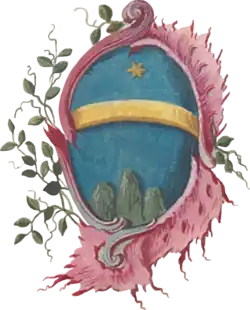 Coat of arms of the Gropa (1680) The Gropa were a noble Albanian family who ruled over the eastern shore of Lake Ochrida as early as the 13th century. In recognition of the services rendered, Sevasto Paulo Gropa was granted dominion over several lands by Charles I of Anjou through a royal decree, dated May 18, 1273. Encompassing parts of the Ebu Valley, they included the villages of Radicis, Cobocheste, Zuadigorize, Sirclani and Crave Zessizane.[14] Grand Zupan Andrea Gropa assumed control of Ochrida following the decline of the Prilep Lordship in 1371. Under his rule, the region remained an independent domain until 1380, when Karl Thopia, another prominent Albanian lord, took over governance. Zaccaria Gropa distinguished himself as a commander in several battles against the Turks and was head of the colony that migrated to Sicilia in 1465.[15] The coat of arms of the Gropa lineage is depicted in the 1680 catalogue "La Universita delle Insegne Ligustiche Delineate da Gio Andrea Musso" (p. 13)