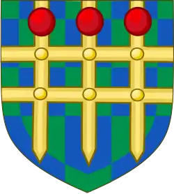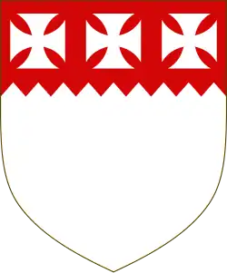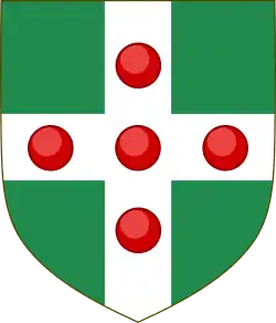 Escutcheon: Vert on a Cross Argent five Torteaux Gules Crest: A Garb Vert Motto: Repetens exempla suorum (Following the example set by our forebears) [3] |