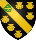Escutcheon: Sable a Bend between six Escallops Or, and as an honourable augmentation (granted Aug 1906) on the bend in chief on an Escutcheon Vert a Key surmounted by a Baton in saltire Or.