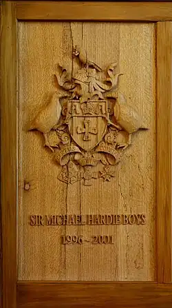 - ^ TRANSCRIPT OF EXTRACT FROM THE RECORDS OF THE COLLEGE OF ARMS - Grants 166/110 - Grant of Arms, Crest and Supporters to Sir Michael Hardie Boys, College of Arms, 2000