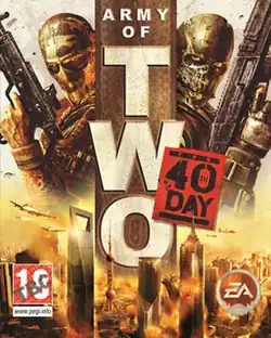 Army of Two: The 40th Day is a 2010 third-person shooter video game developed by EA Montreal and published by Electronic Arts for PlayStation 3 and Xbox 360. The game was also released for PlayStation Portable, which was developed by Buzz Monkey.[4] It is the sequel to Army of Two.