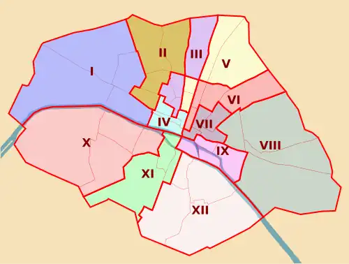 In 1860 Paris was extended to the Thiers wall, giving rise to a new division into twenty arrondissements,[4] completely different to the twelve.