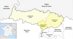 As parts of the department Seine-et-Oise, the arrondissement of Pontoise was established in 1800, the arrondissement of Montmorency in 1962 and the arrondissement of Argenteuil in 1966.[2] In 1968 the department Val-d'Oise was created from part of the former department Seine-et-Oise, and the arrondissements of Pontoise, Argenteuil and Montmorency became part of it.[3] In March 2000 Sarcelles replaced Montmorency as subprefecture.[3][4]
