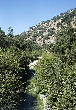 Arroyo Hondo is a northwestward-flowing 13-mile-long (20.9 km)[2] river in Santa Clara County, California, United States, that lies east of Milpitas.[1] The area is privately owned by the San Francisco Water Department and is closed to public access because of its usage as drinking water. Bounded to the east by Oak Ridge and to the west by Poverty Ridge, Arroyo Hondo empties into the Calaveras Reservoir where it joins Calaveras Creek. It is formed by the confluence of Smith Creek and Isabel Creek which drain the west and east slopes of Mount Hamilton, respectively.