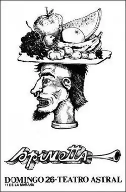 Spinetta presented Artaud with two morning shows at the Teatro Astral on Avenida Corrientes, one of the few and most emblematic venues where Argentine rock artists could perform during the early 1970s. Despite the sustained growth that the rock nacional movement had been experiencing, venues were made available sporadically and only in the morning or late night hours, as the genre had yet to "reach the necessary status to deserve the central schedules."[88] In addition to Spinetta as a soloist and alongside Pescado Rabioso and later Invisible, other acts that performed at Teatro Astral during those years include Manal, Moris, Color Humano, Sui Géneris and Crucis.[88]