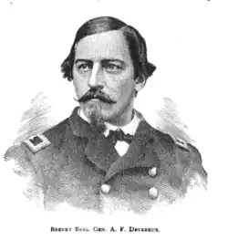 Arthur Forrester Devereux (April 27, 1838 – February 13, 1906) was a captain in the Massachusetts Volunteer Militia prior to the Civil War and a colonel in the Union Army during the Civil War. He is notable for his expertise and proficiency in the instruction of military drill. During the Battle of Gettysburg, the 19th Massachusetts Infantry, under his command, played an important role in filling a breach in the Union lines during Pickett's Charge. After his active service had concluded, Devereux was awarded the honorary rank of brevet brigadier general, United States Volunteers, by appointment of President Andrew Johnson on February 21, 1866, to rank from March 13, 1865, and confirmation by the U.S. Senate on April 10, 1866.[1]