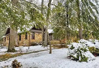 Arthur W. Moore House, also known as Rockhaven, is a historic home located near Horse Shoe, Henderson County, North Carolina. It was built in 1936, and is a one-story, "U"-shaped masonry dwelling with American Craftsman style design elements. It rests on a stone and brick foundation, a river rock exterior, and has a tile roof. Also on the property is the contributing original rock garden landscape (1936) and storage shed (c. 1942). It was built as the summer residence for Arthur W. Moore.[2]