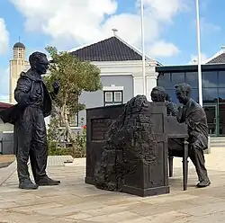 Statue of Padú Lampe and Rufo Wever, composers of the national anthem of Aruba.