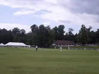 The ground has hosted some tour matches, and also MCC matches against international A sides. The first of these matches was in 2000 as part of Zimbabwe's tour of England against a West Indians team. The match ended in a draw, with West Indians Sherwin Campbell, Brian Lara and Shivnarine Chanderpaul all scoring centuries, as well as Zimbabwe and Sussex cricketer Murray Goodwin.[5] In 2002, Arundel Castle hosted a drawn match between Indians and West Indies A and in 2003 it hosted a drawn match between India A and South Africans.[6][7] The ground hosted MCC matches against the Australians in 2001, the West Indians in 2004, and Sri Lanka A in 2007; the MCC lost all three matches.[8][9][10]