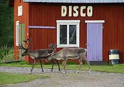 Reindeer outside a disco.