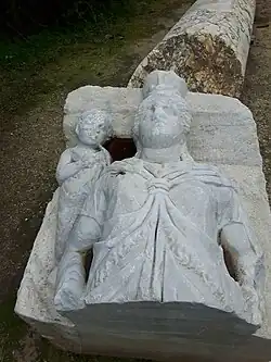 In 1815, Lady Hester Stanhope's expedition to Ascalon constituted the first modern archaeological excavation in Palestine. Using a medieval Italian manuscript as her guide, she persuaded the Ottoman authorities to allow her to excavate the site in search of a large hoard of gold coins allegedly buried under the ruins of the Ascalon mosque. The governor of Jaffa, Abu Nabbut (Father of the Cudgel) was ordered to accompany her. On the second day of digging, the lower foundation walls of the mosque were discovered at a depth of three or four feet, along with fragments of marble pillars, a Corinthian capital, a faience vessel, and two small pottery phials. Further exploration revealed several distinct phases in the history of the structure, leading to the conclusion that the site had originally been a pagan temple converted into a church and then a mosque. Stanhope's main find was a seven-foot headless marble statue, which was smashed and thrown into the sea.[1]