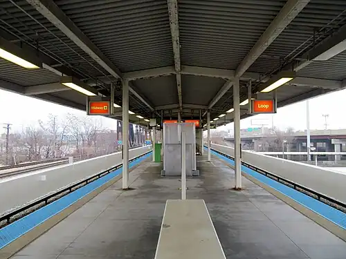 Ashland, which opened on October 31, 1993, is similar to other stations on the Orange Line and has a layout based on those of the Dan Ryan Line, except that, unlike the last stations of the Dan Ryan Branch of the Red Line, this station is not located in the middle of an expressway. It is composed of a central platform overlooking the entrance and is equipped with escalators and elevators providing accessibility to passengers with disabilities. Unlike other stations on the Orange Line, Ashland does not have a park-and-ride facility.[2]