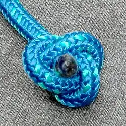 Ashley's stopper knot, also known as the oysterman's stopper, is a knot developed by Clifford W. Ashley around 1910. It makes a well-balanced trefoil-faced stopper at the end of the rope, giving greater resistance to pulling through an opening than other common stoppers. Essentially, the knot is a common overhand noose, but with the end of the rope passing through the noose eye, which closes upon it. It may be multiplied to form a larger knot with more than three bights appearing around the knot. It is the result of implementing a double wall knot in one strand.