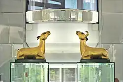 Originally, this pair of deer accompanied a Wheel of Dharma above the entrance gate of a Tibetan monastery.