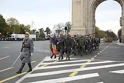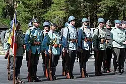 It has annually participated in the military parade of the Romanian Armed Forces organized on the occasion of Great Union Day under the Arcul de Triumf, first taking part in this event in 2009.[4] In 2016, it took part the Chișinău Independence Day Parade on Great National Assembly Square.[5][6] It has also marched in ceremonies in 9 foreign countries: France (Verdun), Italy, Germany, Austria, the Czech Republic, Hungary, Bulgaria (Tutrakan), Ukraine (Sevastopol) and Russia (Volgograd).[7]