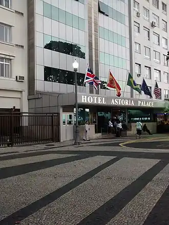 The Astoria Palace Hotel is a hotel in Copacabana, Rio de Janeiro, Brazil. It faces the Copacabana Beach and is located just metres west of the Copacabana Palace Hotel. It is one of the newest hotels in the area and has 115 rooms.