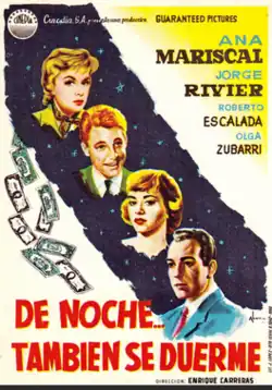 At Night You Also Sleep (De noche también se duerme) is a 1956 Argentine comedy film directed by Enrique Carreras and written by Abel Santacruz.[1] It stars Ana Mariscal, Jorge Rivier, Roberto Escalada and Olga Zubarry, and premiered on 19 January.[2]