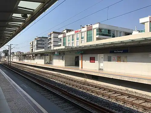 Ata Sanayi railway station (Turkish: Ata Sanayi istasyonu) is a railway station on the İzmir-Afyon railway in Çiğli, İzmir. The station is serviced by İZBAN commuter trains and located within the Central Line of the İZBAN network with trains running north to Menemen and Aliağa and south to Alsancak, Cumaovası and Tepeköy.[2]