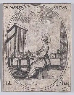 Athanasia received a standard education that consisted of readings in the Psalter and the Bible.[2] Scholar Oana-Maria Cojocaru, when discussing the education of young noble girls during the late 8th century, stated that Athanasia received an elementary education, which began when she was seven years old. It is unclear if she had a tutor or if she was educated at home by her parents.[4] According to scholar Eve Davies, during her discussion of the education of Byzantine youths during the late 8th century, by the time Athanasia was seven years old, like many children her age, she had learned the Psalter in a short time and "eagerly studied all the Holy Scriptures".[9] Cojocaru, in her discussion of the skills Byzantine girls learned in preparation for marriage, states that Athanasia's vitae records a vision she experienced while she was learning to weave on the loom at her home, in which she saw a shining star that came from heaven and shone on her chest before disappearing from her sight.[10][11] Her experience inspired her to pursue monasticism, although her parents opposed her wishes and forced her to marry. Cojocaru stated that although Athanasia was able to enter a monastery as an adult, it proved that "the agency of children, more specifically making a life-changing decision, was more available to boys than girls".[11] Athanasia's hagiographer states, about this experience, "By this light, therefore, she was abundantly enlightened in her soul and came into an absolute hatred for the vanity of life".[12]