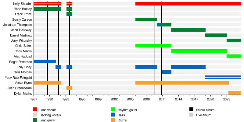 • Kelly Shaefer – lead vocals (1987–1994, 2006–present), rhythm guitar (1987–1994)