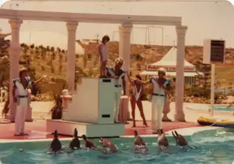 Prior to the park's opening, seven bottlenose dolphins were caught from the local coastal population and were used as performance animals for the next ten years. At the time Atlantis closed in 1990, the park had nine dolphins, six wild born, and three captive born juveniles.[5][6]