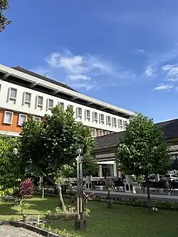 Atma Jaya University Yogyakarta (Indonesian: Universitas Atma Jaya Yogyakarta) (Javanese: ꦈꦤꦶꦮ꦳ꦼꦂꦱꦶꦠꦱ꧀ꦄꦠ꧀ꦩꦗꦪꦔꦪꦺꦴꦒꦾꦏꦂꦠ, romanized: Univêrsitas Atma Jaya Ngayogyakarta), abbreviated as UAJY, is a university located in Depok, Sleman Regency, Special Region of Yogyakarta, Indonesia. UAJY is one of the 50 most promising university and one of the best six universities in Indonesia in quality assurance according to Directorate of Higher Education, Department of National Education. Currently the university offers 12 undergraduate and 7 graduate programs, with an estimated ±11.307 students. There are four main campus buildings: Alfonsus Building in Mrican, Thomas Aquinas Building in Babarsari, Bonaventura Building in Babarsari, Teresa Building in Babarsari.