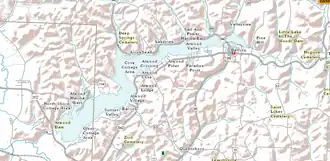 Atwood Lake is a reservoir located in Tuscarawas and Carroll counties in east central Ohio. The lake is formed by Atwood Dam 40°31′36″N 81°17′5″W / 40.52667°N 81.28472°W / 40.52667; -81.28472 (Atwood Dam)[3] across Indian Fork,[4] a tributary of Conotton Creek. In addition to the Indian Fork, the lake also has coves to the north up Elliott Run, Willow Run and two unnamed streams along Bark Road and Ohio State Route 542.