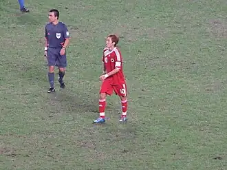 Au Yeung was a member of the Hong Kong national under-23 football team again for the 2010 Asian Games. In the final group game, Au Yeung scored two goals against Bangladesh and helped Hong Kong win 4:1 and advance to the knock-out stage for the first time in 52 years.[18] But Hong Kong was then eliminated by 0:3 by Oman.