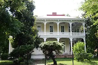 The Augustus Garland House is a historic house at 1404 Scott Street in Little Rock, Arkansas. It is a two-story wood-frame structure, with a truncated hip roof, weatherboard siding, and brick foundation. It has an elaborately decorated two-story front porch, featuring bracketed square columns, low jigsawn balustrades, and a modillioned and dentillated cornice. It was built in 1873 for Augustus Garland, a prominent local lawyer who served as Governor of Arkansas, United States Attorney General, and United States Senator.[2]
