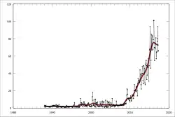 Australian Oil and Gas company Santos is a major investor in Bangladesh's natural resources sector.[2] In 2014 trade between the two countries crossed AUD 1 billion mark, of which 450 million came from Bangladesh's exports to Australia. Australia enjoying a surplus of AUD 160 million dollar on trade.[3]
