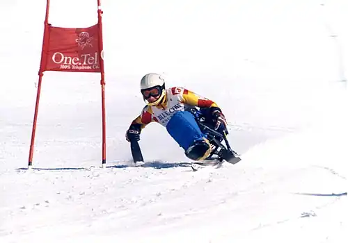 Cameron Rahles-Rahbula (born 9 July 1983 in Camperdown, Victoria), a former physiotherapist, was diagnosed with a rare type of bone cancer called osteosarcoma at twelve years old and had to get his left leg amputated above the knee after ineffective chemotherapy when he was fourteen.[4] Two weeks after his amputation, his children's cancer support network placed him in a ski camp at Mount Buller as part of his rehabilitation program.[4] He could ski unaided after only three days, and from there his skiing career blossomed. His first serious competitive competition and first major success was the 2001 National Championships at Mount Hotham, where he placed second in the giant slalom.[4] It wasn't long before Rahles-Rahbula was noticed by national alpine coach, Steve Bova, and development coach Craig Robinson, who introduced him into the national team and began training with him for the 2002 Salt Lake Paralympics.[4]