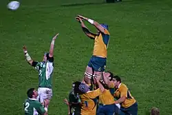 A line-out during Ireland against Australia in 2006.