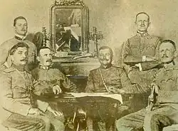 In response to Austrian plans to leave Montenegro as a reduced satellite state, roughly within the borders of 1878, the German Secretary of State for Foreign Affairs Gottlieb von Jagow said that they wanted to mutilate Montenegro in such a way that "only a barren heap of stones, not viable", would remain.[1] Chief of the Austro-Hungarian General Staff Franz Conrad von Hötzendorf demanded complete annexation, or Montenegro should "lose its effective independence" and retain "only a fictitious sovereignty". The Montenegrin western border was to be shifted so far (line north-western tip of Lake Skadar-Podbožur-Goransko) that even the capital Cetinje would no longer be located on the territory of the shrunken rest of Montenegro.[2] However, this demand, which was tantamount to annexation, was rejected by Foreign Minister Stephan Burián von Rajecz and Emperor Franz Joseph I so as not to make possible peace with other states more difficult. The historian Gerhard Ritter saw the unsuccessful attempts at special peace with Serbia and Montenegro as a "planned peace by force", which shows that "even more so in Austria" there was a willingness to "ruthlessly exploit military victories to expand power, without asking much about the 'opinion of the world' and the extension of the war".[3]