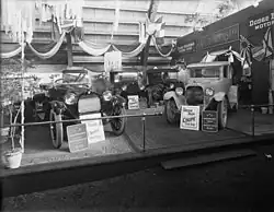 In 1926, General Motors New Zealand was formed, opening an assembly plant in well-established industrial area, Petone, in the Hutt Valley.[47] In its first twelve months ended mid September 1927 the plant assembled 2,191 cars.[48] In late 1929 GM was able to report the following locally sourced materials were used in their cars: wool in the upholstery, Miro timber for commercial bodies, varnishes, glues, enamels and numerous small parts, glass would shortly be added. Other articles which in GM's opinion should be made locally included carpets and top material and its necessary padding. All associated advertising literature was locally printed and in colour.[49] At first, it produced American Chevrolet, Pontiac and Buick cars, adding Oldsmobile in 1928.