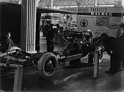 1939 Plymouth chassis ready for body drop on display at the New Zealand Centennial Exhibition 1939-1940