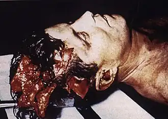 In 1968, U.S. Attorney General Ramsey Clark appointed a panel of four medical experts to examine photographs and X-rays from the autopsy.[41] The panel confirmed findings that the Warren Commission had published: the President was shot from behind and was hit by only two bullets. The summary by the panel stated: "Examination of the clothing and of the photographs and X-rays taken at [the] autopsy reveal that President Kennedy was struck by two bullets fired from above and behind him, one of which traversed the base of the neck on the right side without striking bone and the other of which entered the skull from behind and exploded its right side."[42]