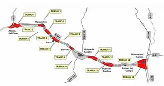 The Autovía A-25 is a planned Spanish motorway that will connect the A2 with the A-23 between Alcolea del Pinar (Guadalajara) and Monreal del Campo (Teruel). A study was commissioned in 2009. The highway is not yet listed in the road construction budget. In the longer term it could replace the N-211 and the A-25 could continue to Alcañiz or even to Tarragona, connected with future highways A-68 and A-7.[1]
