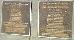 Plaques commemorating the field's 2006 opening & the park's 2008 reopening.