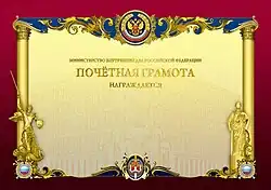 "Certificate of Honour of the Interior Ministry of the Russian Federation" «Почётная грамота Министерства внутренних дел Российской Федерации» |