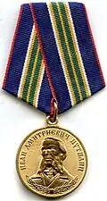 Awarded to federal state civil servants, employees of organs of the ministry of Internal affairs of Russia and to citizens of the Russian Federation and other persons for their significant contribution to strengthening the rule of law, improving the legal regulations of bodies of internal affairs, for the training of qualified personnel for the bodies of internal affairs, for assisting law enforcement bodies of the Russian Federation in the discharge of their duties.[1][4][7] |