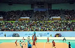 The Azadi Indoor Stadium, officially named Azadi 12,000 Capacity Hall (Persian: سالن دوازده هزار نفری آزادی), is an indoor sports arena in Tehran, Iran. The stadium has a seating capacity of 6,583, and the stadium capacity with standing room is 12,000. The stadium is located within the Azadi Sport Complex, it is mainly used for volleyball, wrestling and futsal matches, but occasionally basketball games are played here. The stadium hosts Iran's national volleyball team, the FIVB Volleyball World League, and the 2014 FILA Wrestling World Cup.[2]