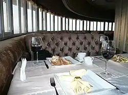 A rotating restaurant on the 62nd floor (175 metres) of Azeri TV Tower was opened in 2008.[5]