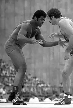 ![]() Morgan (left) wrestling Ilya Mate at the 1980 Olympics | ||||||||||||||||||||||||||||||||||||||||||||||||||||||||||||||||||