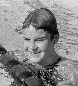 Bärbel Fuhrmann/von Fircks is a five time national champion of the German Democratic Republic and she probably also won 5 silver medals and a bronze.[2] Her medals in the 100 metre butterfly were in 1959 silver, behind Jutta Langenau, in 1960-1961-1962 gold, and in 1963-1964 silver behind Ute Noack. In 1963, the 200 metre butterfly race was added to the championships. Von Fircks won the race and Noack took second place.