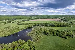 The basin includes 62 lakes over one hectare (2.5 acres).[5] In addition to Bécancour Lake (83 hectares [210 acres]), the river crosses Stater pond (8 hectares [20 acres]) and lakes à la Truite (135 hectares [330 acres]), William Lake (492 hectares [1,220 acres], the largest in the basin) and Joseph (243 hectares [600 acres]).[5][4] As for wetlands, they cover 154 kilometres (95.69 mi), or 5.9% of the.[6] Of these, the bogs covers 118 kilometres (73.32 mi) and the swamps 26 kilometres (16.16 mi).[6]